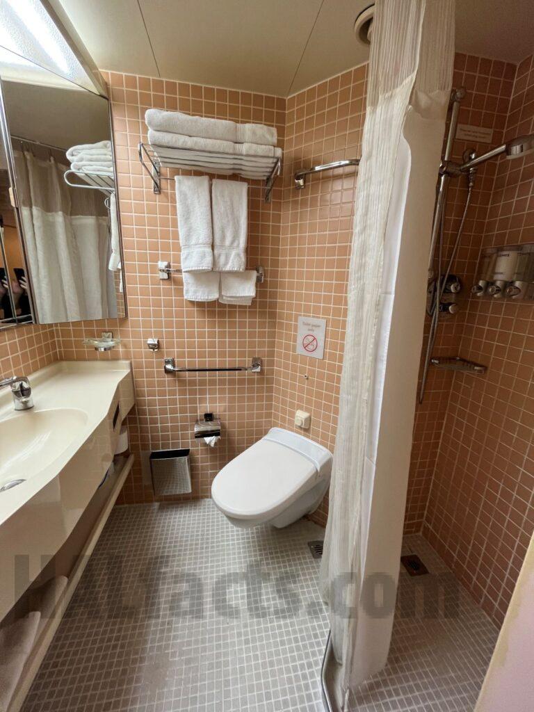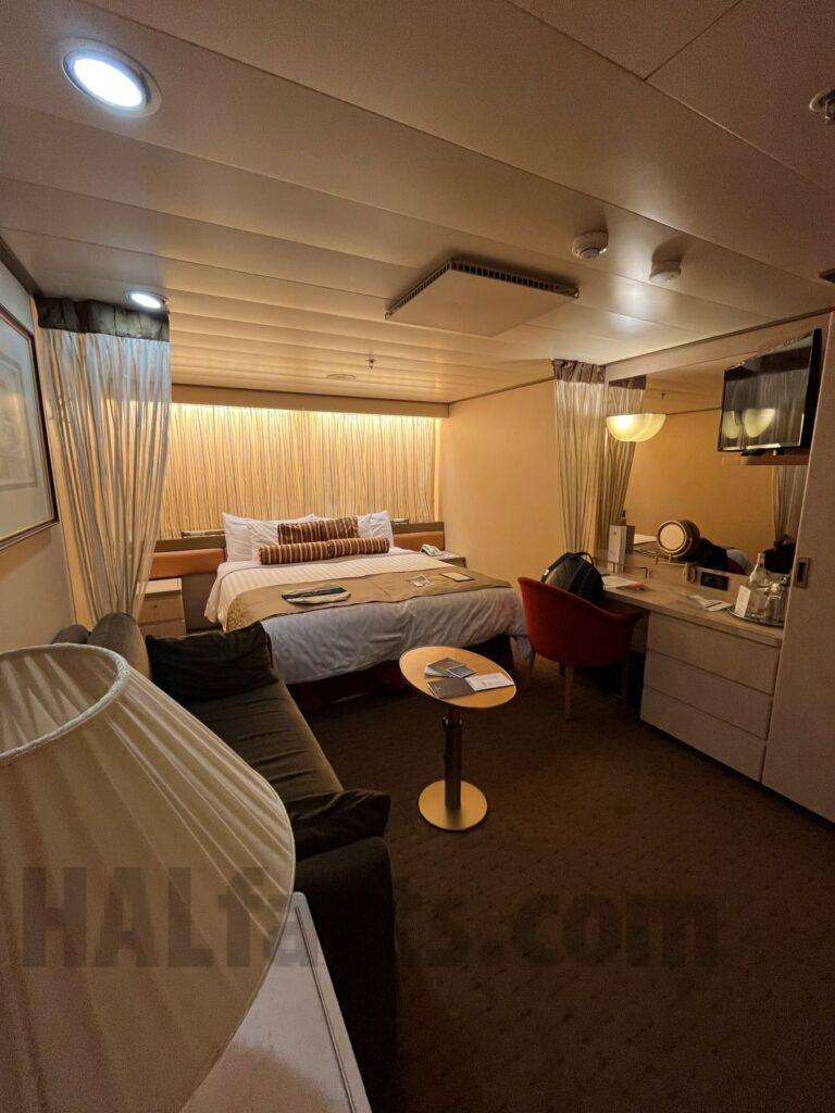 I took these pictures of our room on the Zaandam in August 2023 during a Boston to Montreal cruise. This is room 1877 which is an interior. This is oddly shaped, kind of like an L, which makes the room huge. Very large cabin with separate couch. There is a shower but it’s not the glass shower we’ve had before in other cabins on Zaandam. The bathroom doesn’t appear to have been remodeled and is showing it’s age. The rest of the room has been updated. It’s mid ship and right by the elevators. Never heard any noise from that. There are no cabins on either side of this cabin. Every now and then we heard some noises next to us which is a storage area for the crew and a crew staircase. But other then some noises hear and there, would stay in this room again. Room was quiet at night and slept well. When the boat was moving during sea days, hardly felt anything and I am prone to motion sickness.