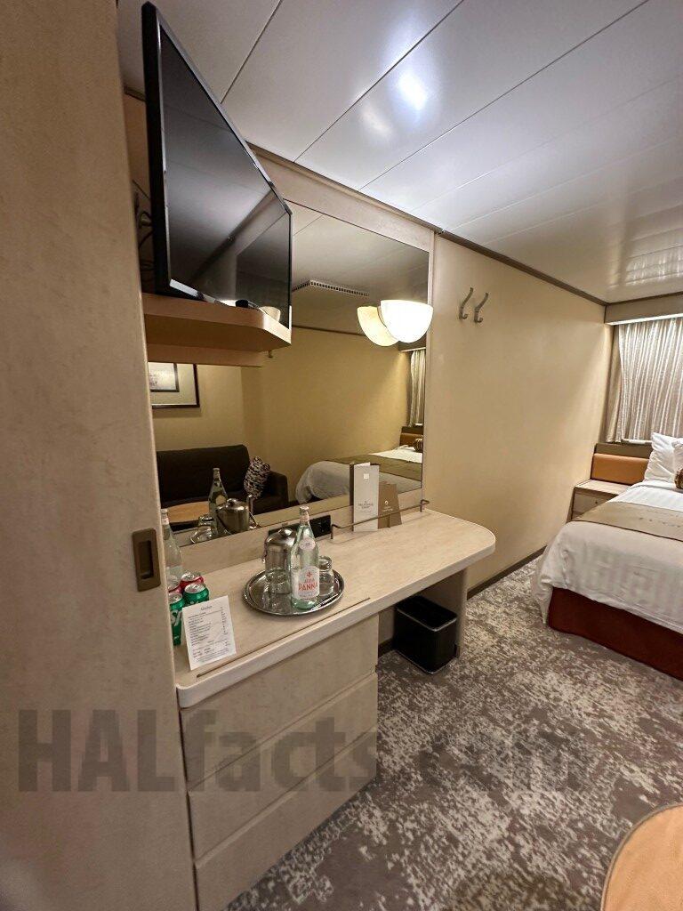 2552 – Volendam OV Submitted 2/21/25 Here’s some pics for ocean view cabin 2552, category DA, on the Volendam. It’s a three-person cabin with a full sized couch and a walk-in shower.