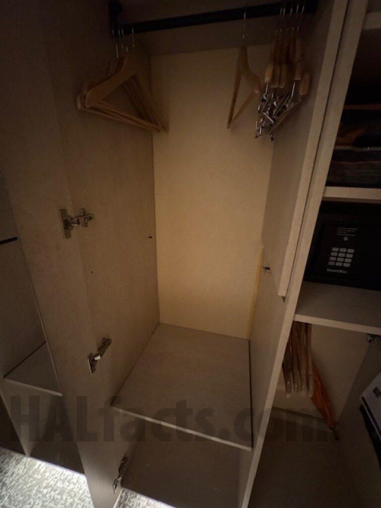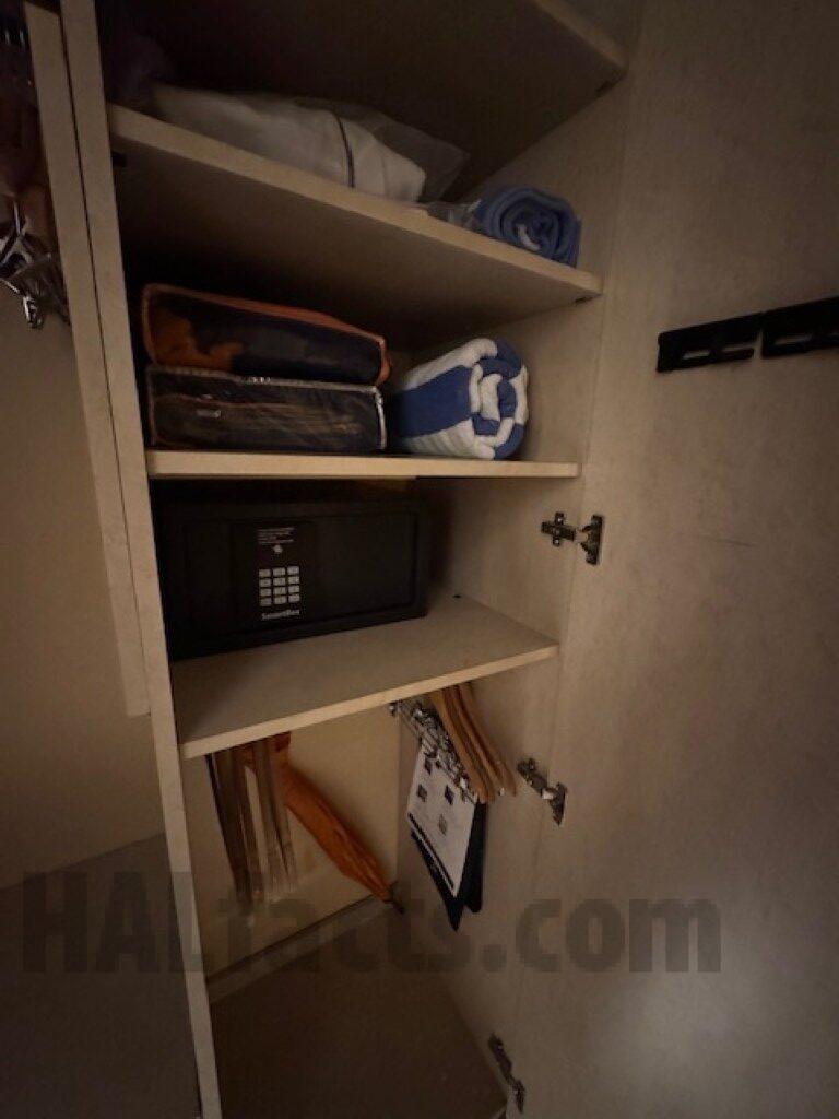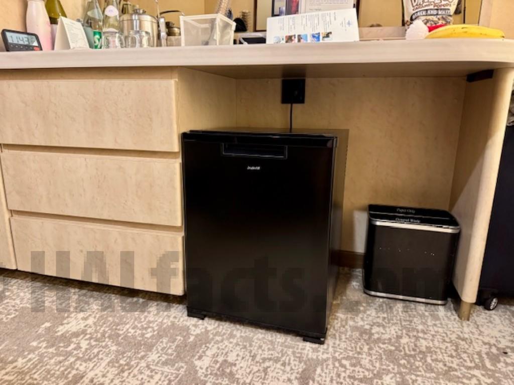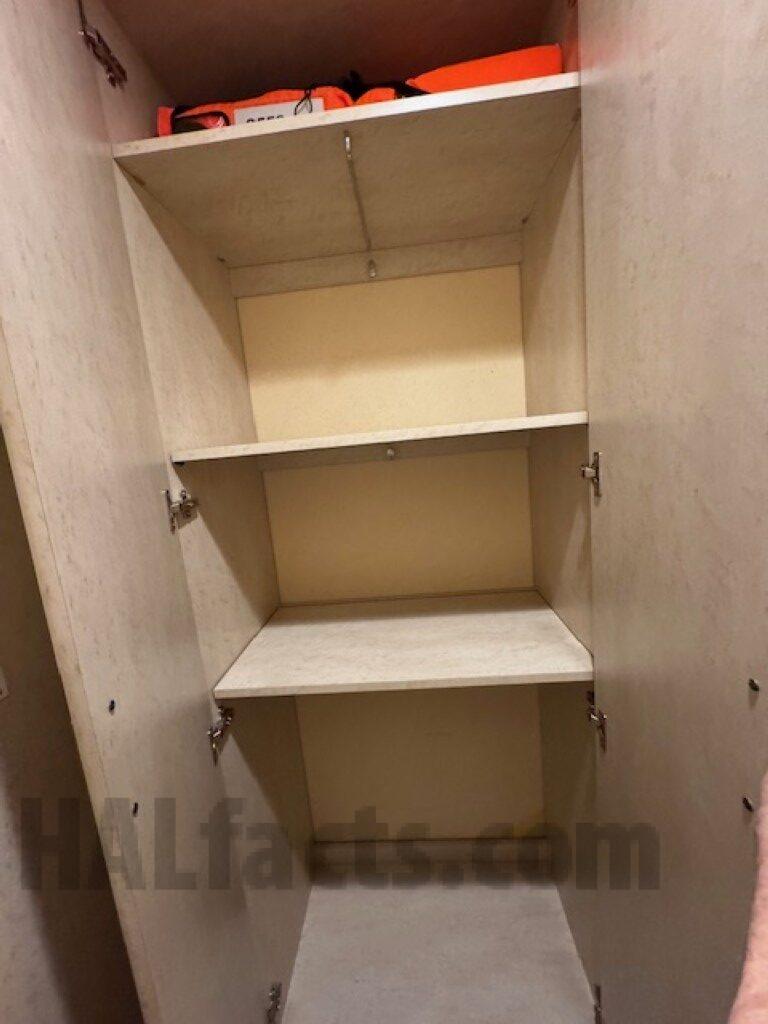 Note: cooler was added under desk during this cruise. It might be able to be moved to between the desk and bed in order to allow sitting at the desk, but it might block access to the side of the bed when the beds are arranged as one bed.