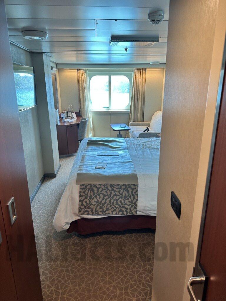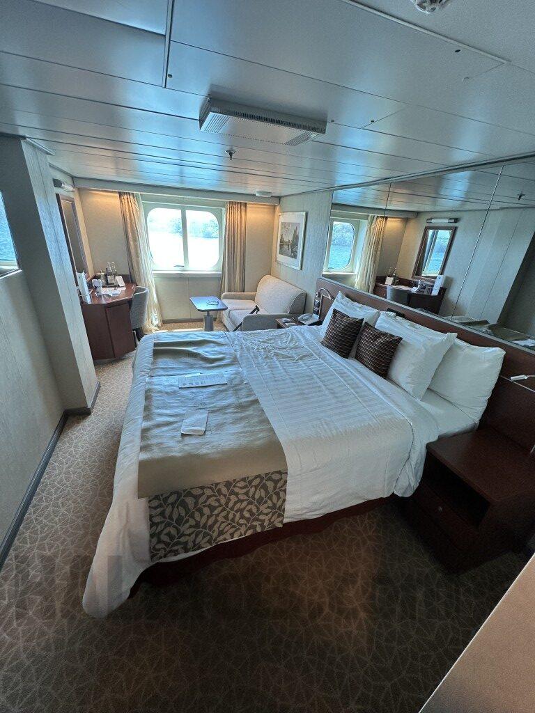 Port aft low deck right below kitchen. Comfy. Nice but horribly noisy. 3-4 am heavy crashing and banging on floor in kitchen above. Not light stepping or such but large metal item being hard dropped on floor above. Complain and they’ll drop staff appreciation charges or some other cost